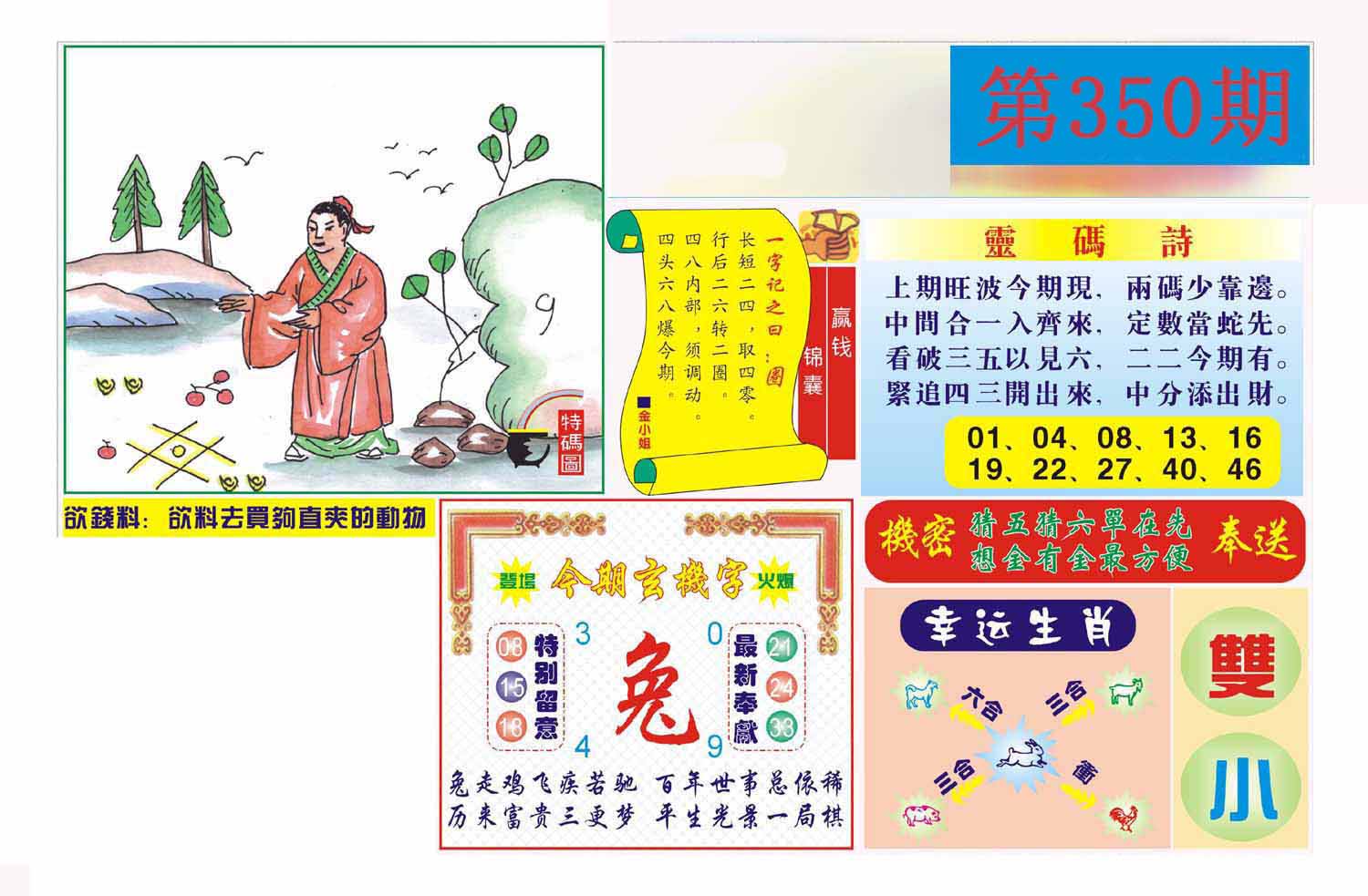 | 331期 | 虎-兔-羊-鼠 | 中:3肖 |