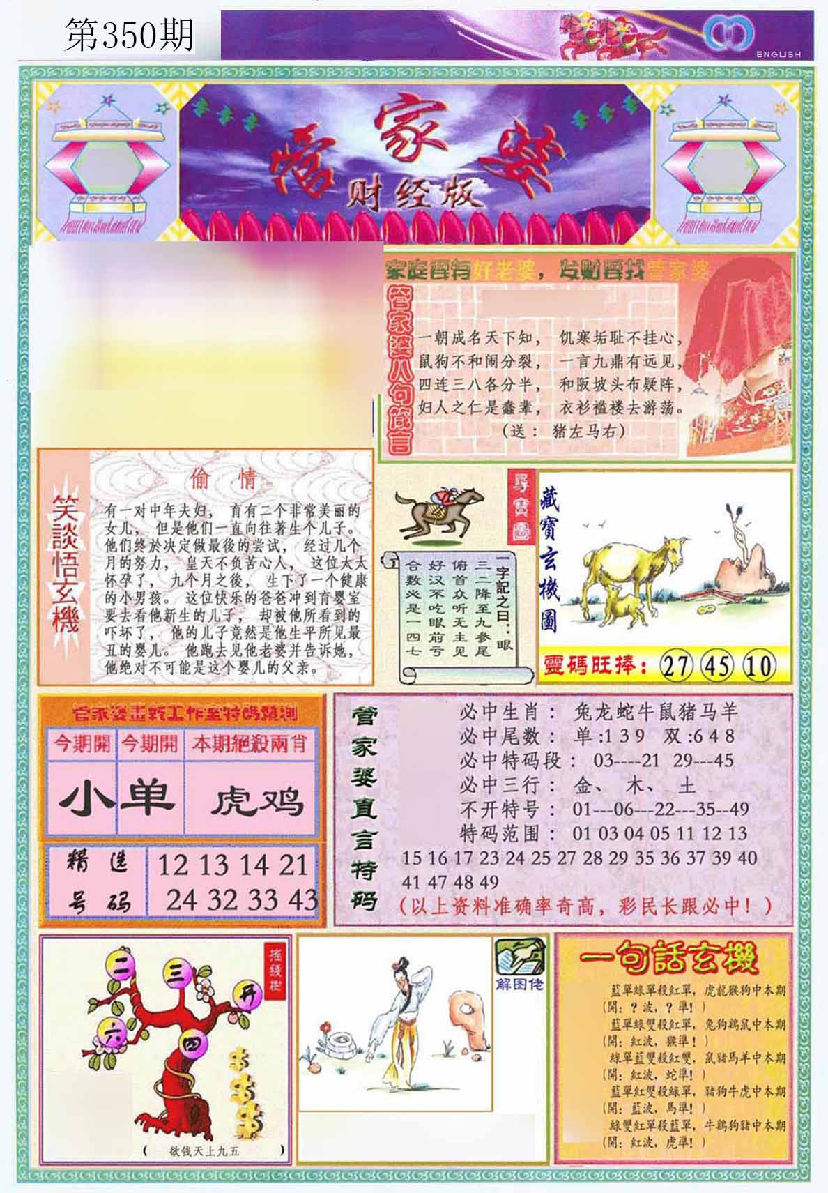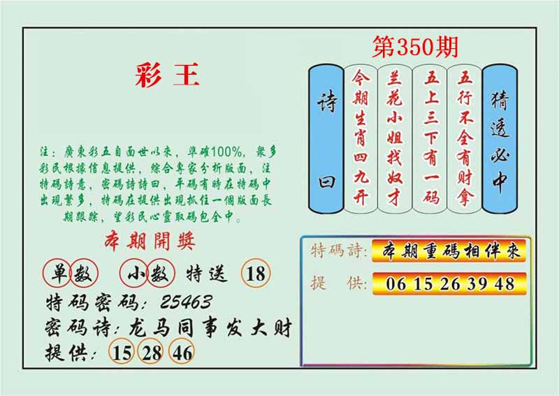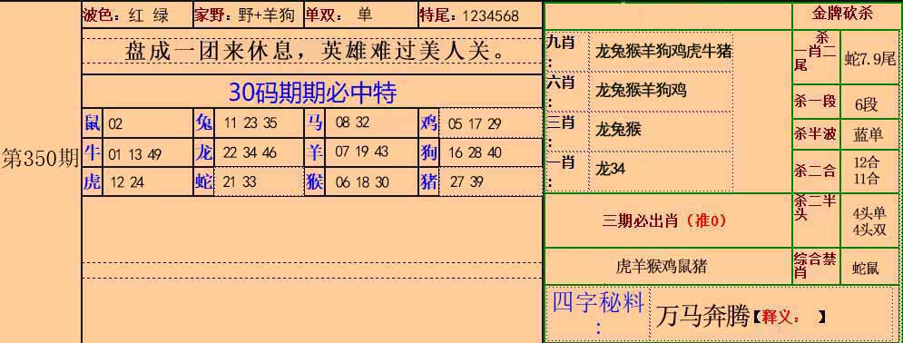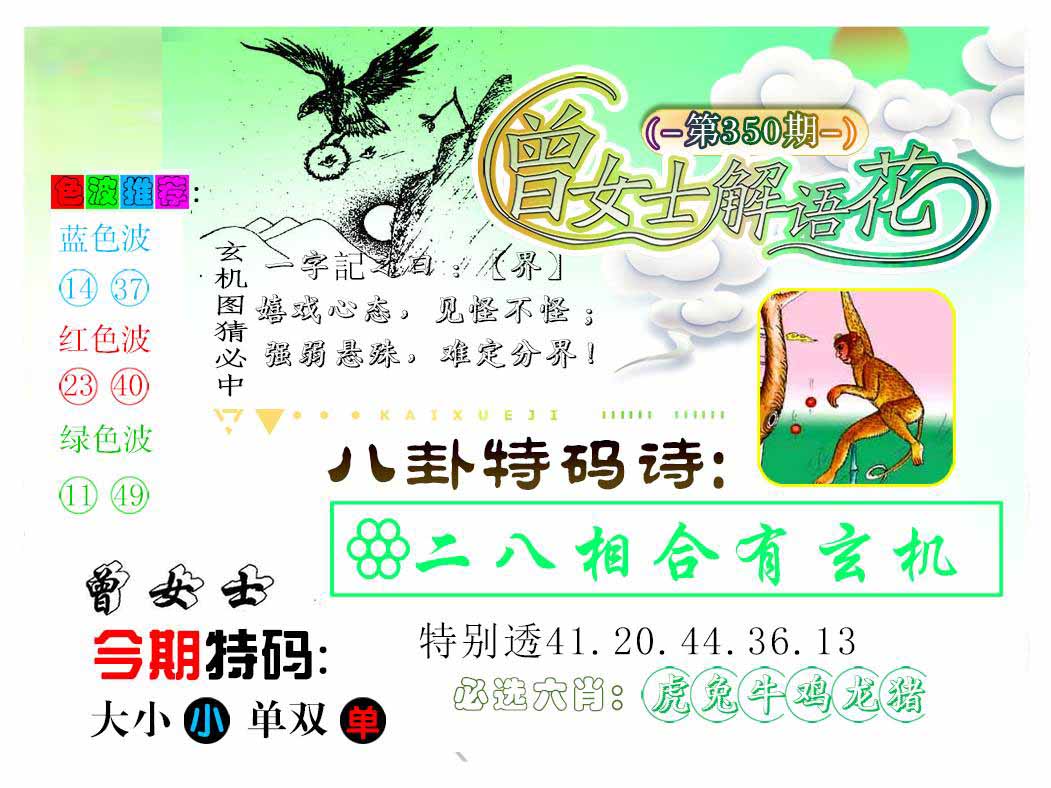 | 349期 | 鸡 | 绿单 | 1 | 2 | 开:虎16 |