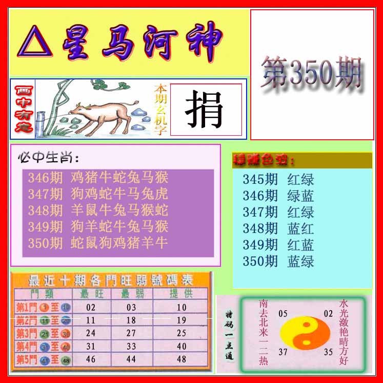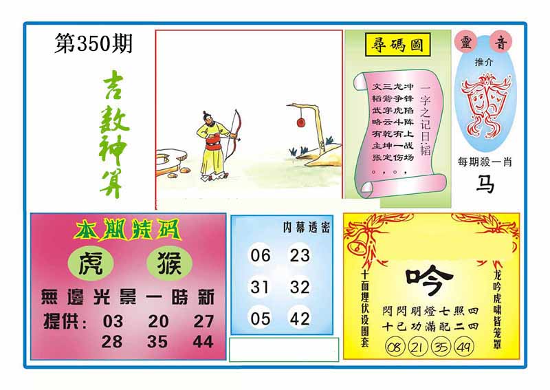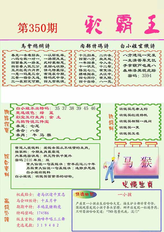 | 348期 | 马 | 蓝双 | 3 | 6 | 开:猪31 |