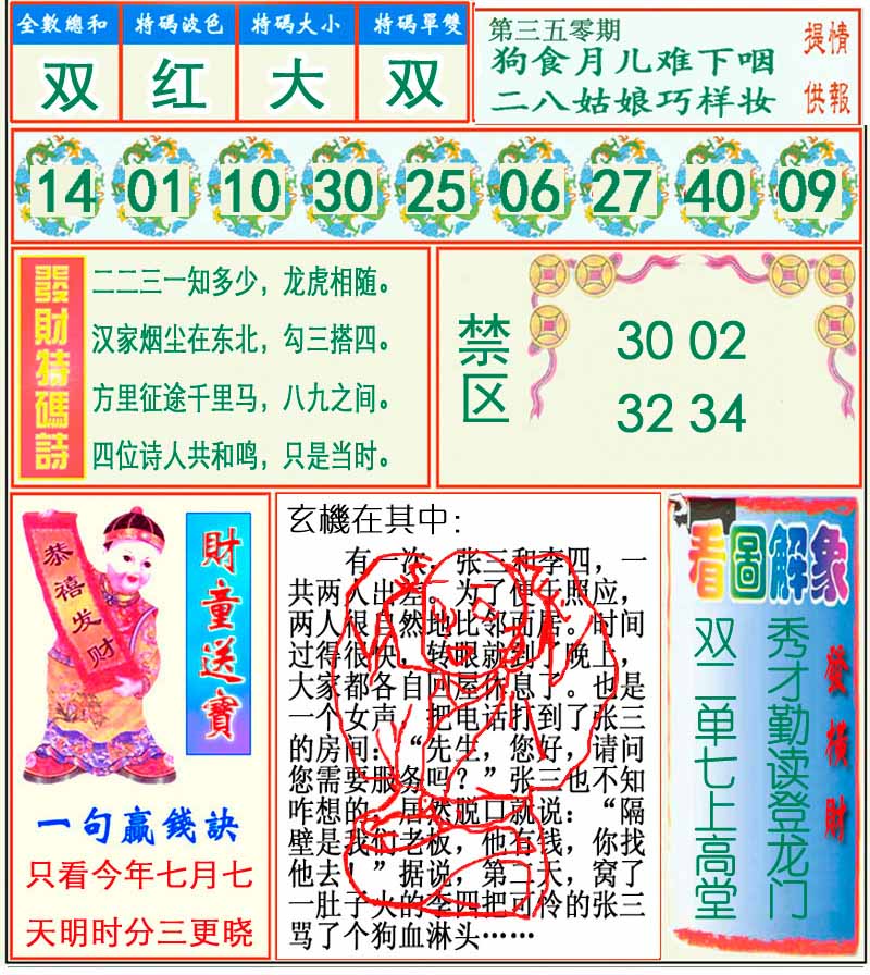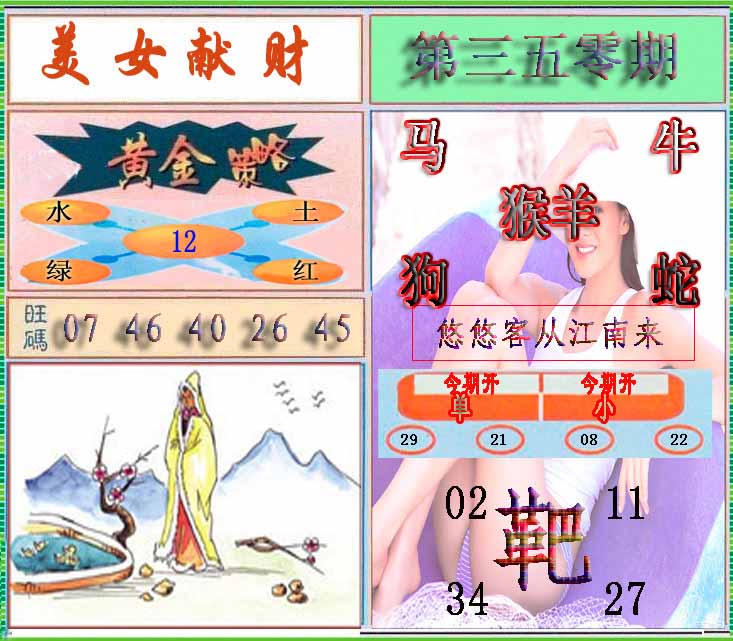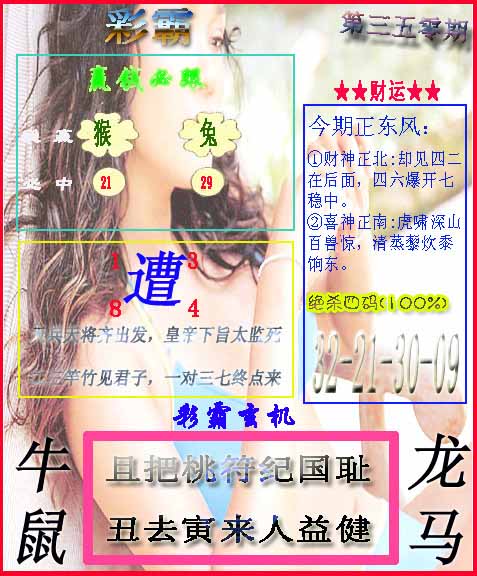 | 七肖 | 马羊牛龙虎猪鸡 | 羊35 |