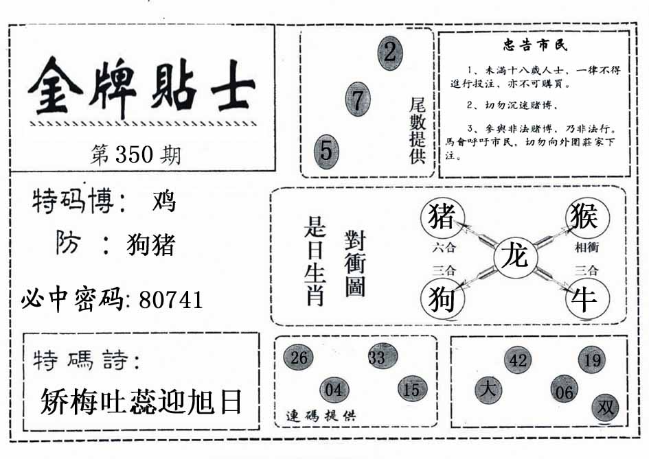 | 七肖 | 鼠鸡兔马牛狗蛇龙 | 龙26 |