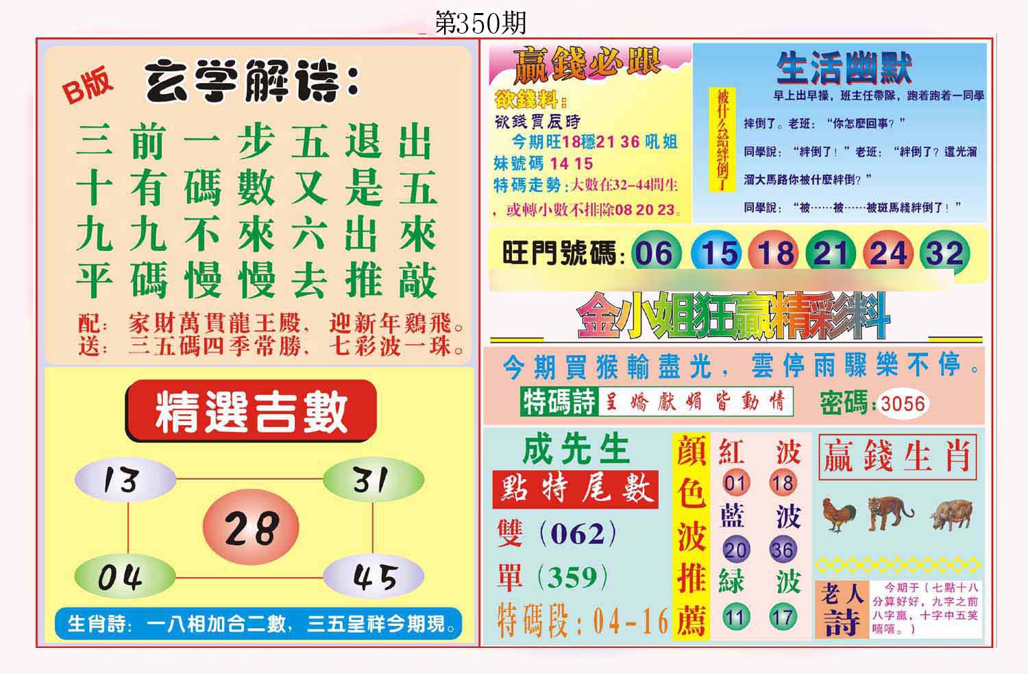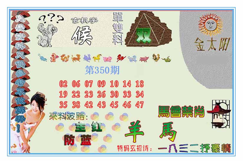 | 346期 | 羊-龙-马-猴 | 中:2肖 |