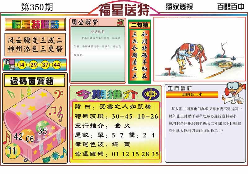| 347期 | 牛 | 蓝单 | 1 | 5 | 开:羊35 |