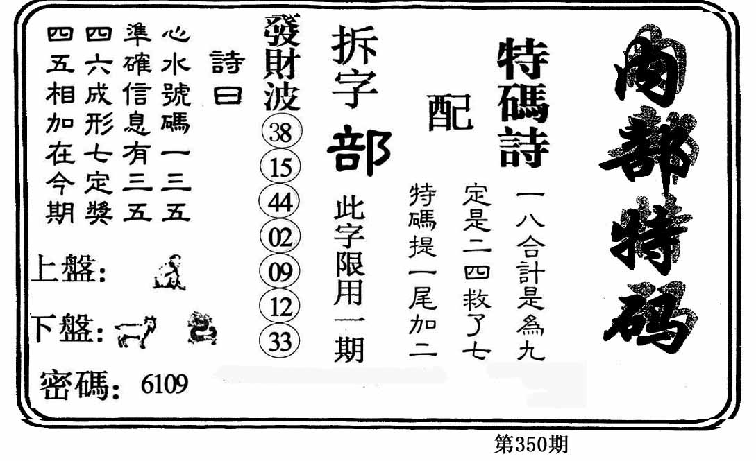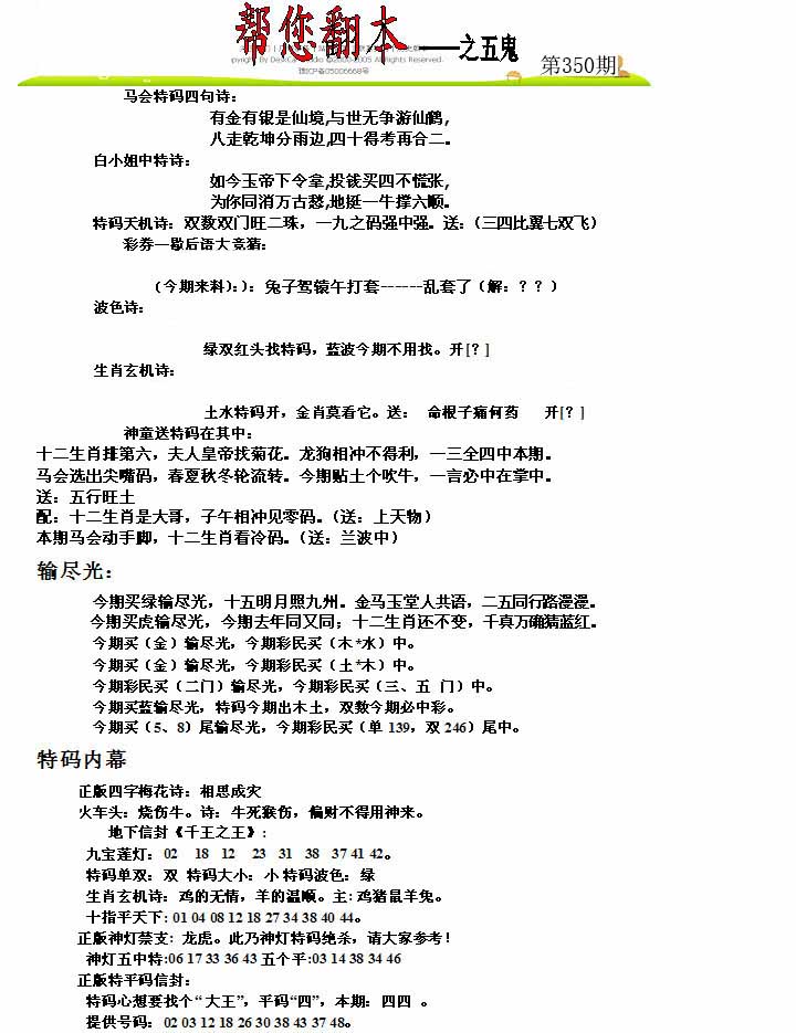 | 350期 | 原创【双数+鸡羊】 | 0000 |
