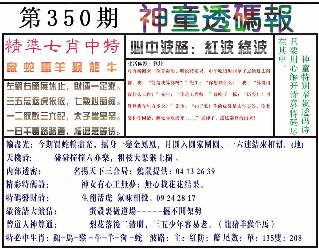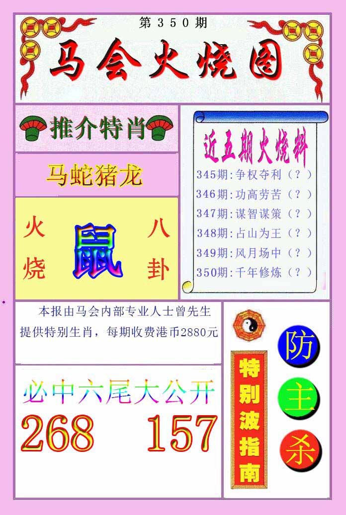 | 341期 | 蛇-龙-马-鼠 | 中:2肖 |
