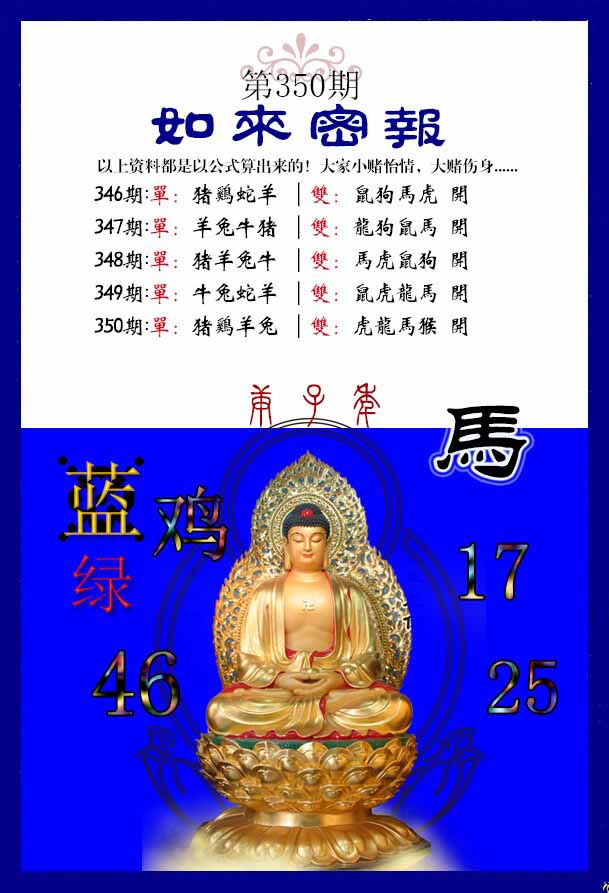 | 342期 | 马 | 蓝大 | 2 | 5 | 开:鸡45 |