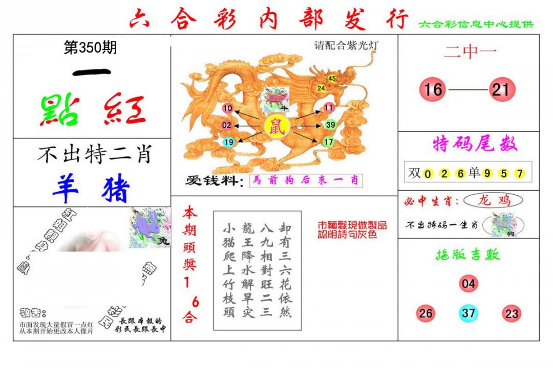 | 307期:复式连肖「龙羊鼠虎」开:龙38 |